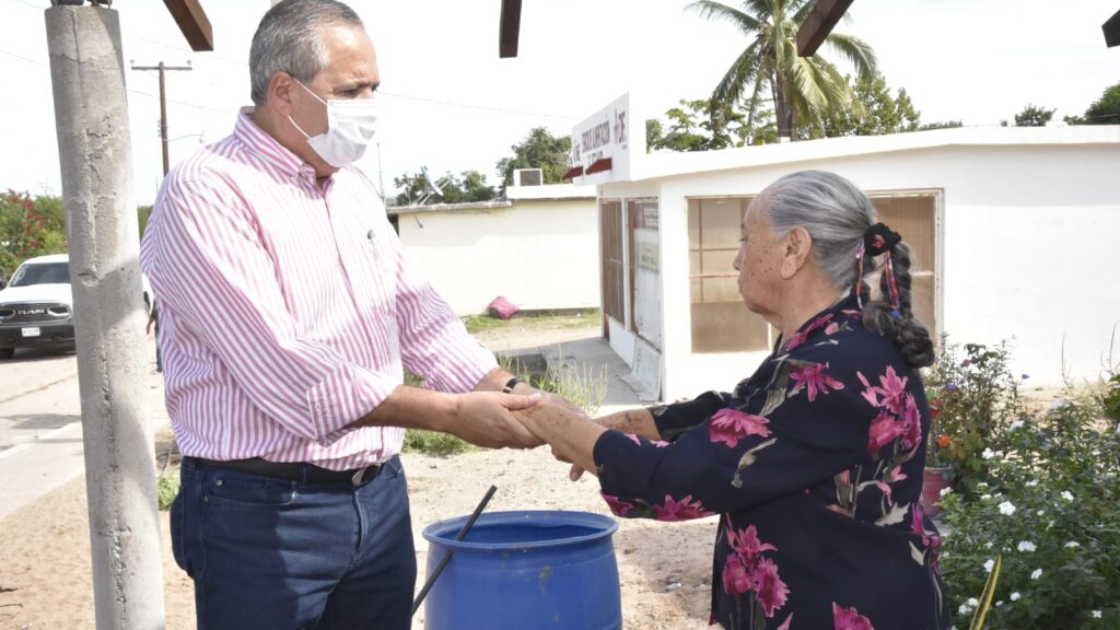 Campo pesquero El Jitzámuri, Ahome, Sinaloa. Noviembre 8 del 2021.- El Presidente Municipal Gerardo Vargas Landeros realizó este lunes una intensa gira de trabajo por comunidades alejadas de la ciudad de Los Mochis en donde supervisó trabajos principalmente de agua potable y drenaje sanitario. El recorrido inició a temprana hora
