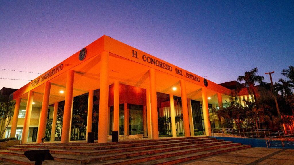 El edificio del Congreso del Estado de Sinaloa se iluminó con luces de color naranja sumándose de esta manera a las acciones enmarcadas en el día por la eliminación de la violencia contra las mujeres y los 16 días de activismo contra la violencia contra las mujeres y las niñas.