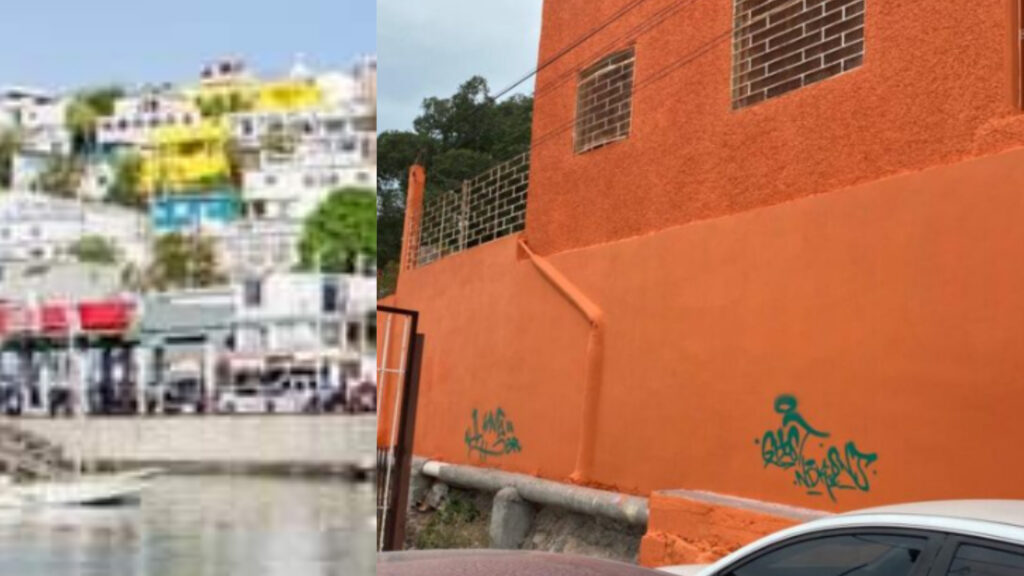 Comienzan a vandalizar con grafitis casas pintadas de colores en Topolobampo.