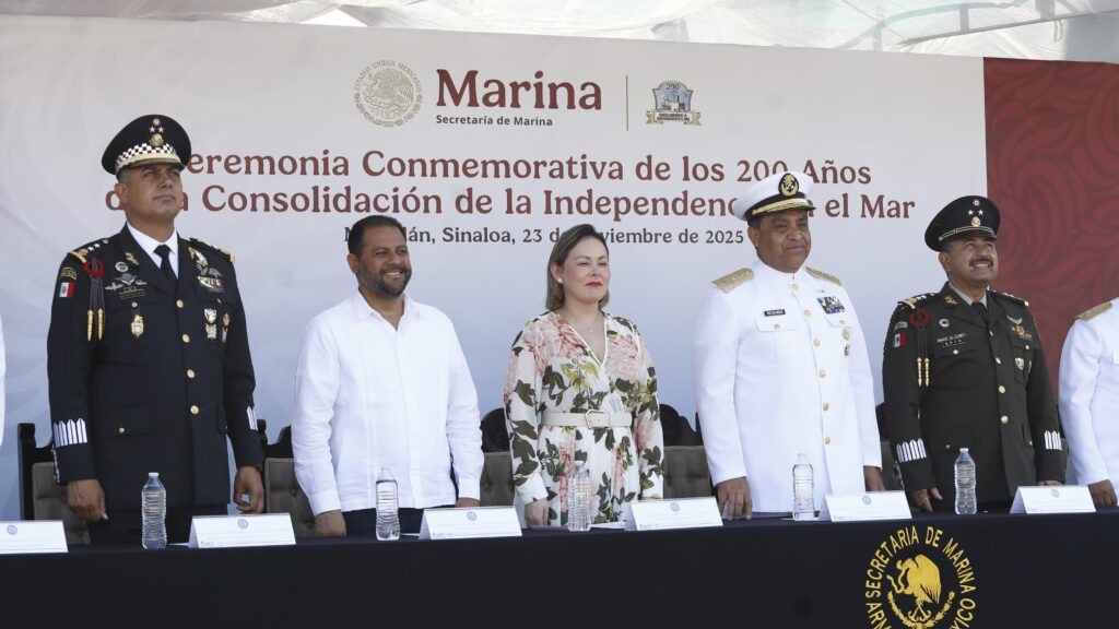 Con la representación personal de gobernador Rubén Rocha Moya, la secretaria general de Gobierno, Yeraldine Bonilla Valverde, asistió a las instalaciones de la Cuarta Región Naval, con motivo de la ceremonia conmemorativa de los 200 años de la consolidación de la independencia en el mar, en cuyo marco se hicieron