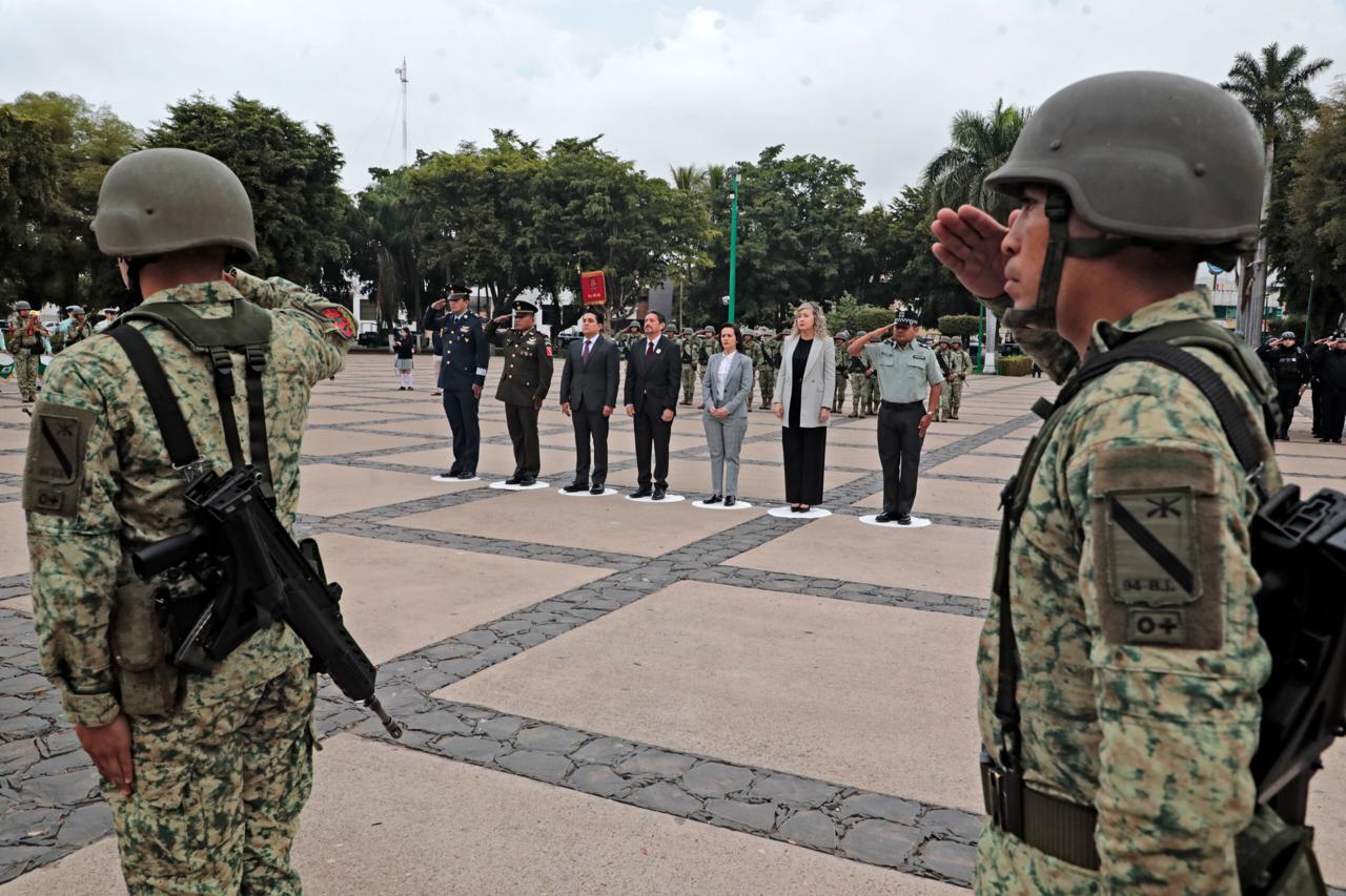 Autoridades civiles y militares conmemoraron el aniversario luctuoso número 100 del general Rafael Buelna Tenorio “El Granito de Oro”, con un izamiento de bandera a media asta y con honores de ordenanza en la plaza cívica de Palacio de Gobierno.