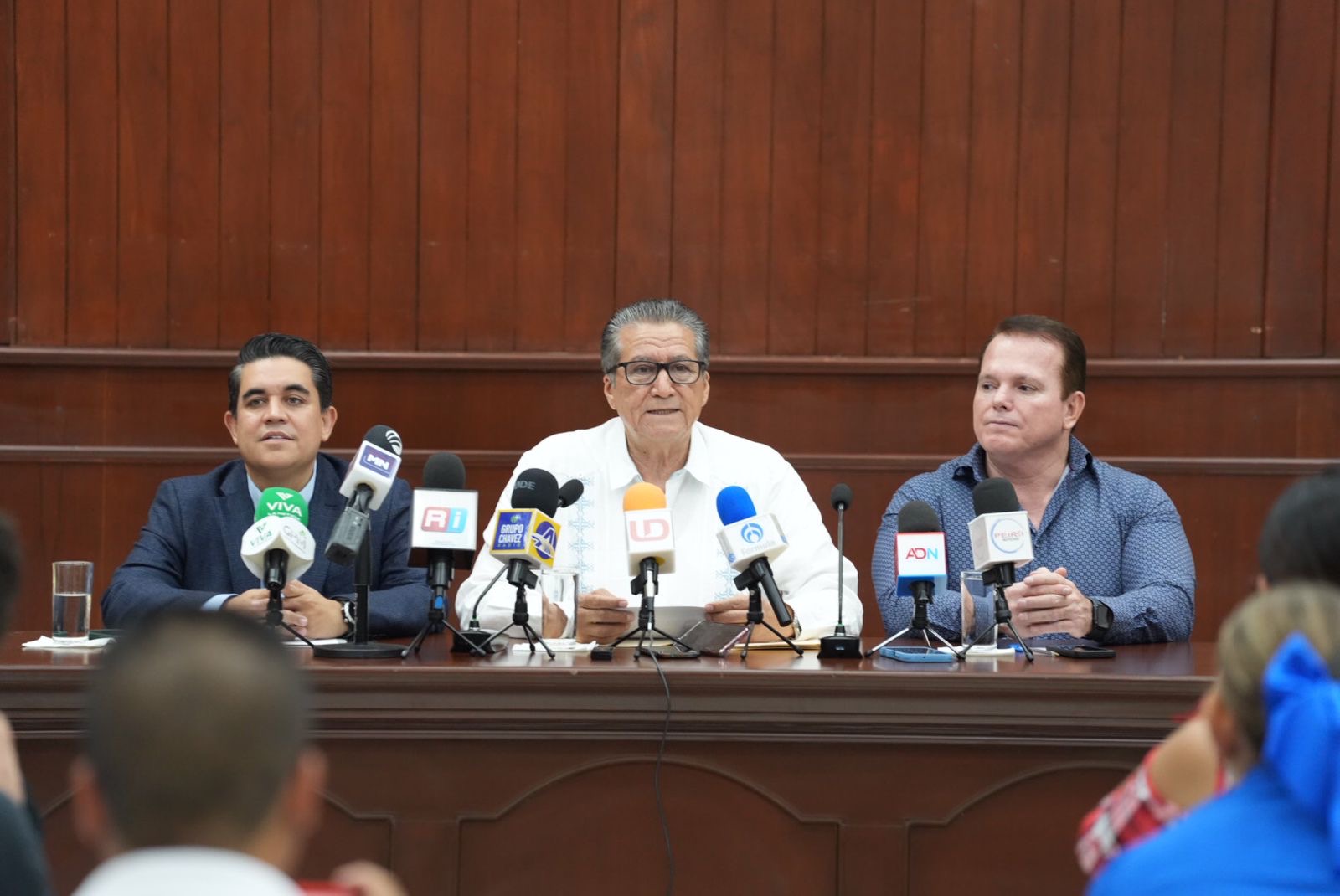 Los presidentes de la Junta de Coordinación Política, diputado Feliciano Castro Meléndrez y de la Mesa Directiva, diputado Ricardo Madrid Pérez, encabezaron una rueda de prensa celebrada en el Salón “Constituyentes de 1917”, acompañados de diputadas y diputados integrantes de la Sexagésima Cuarta Legislatura, para hacer un pronunciamiento que tiene como objeto invitar a establecer el diálogo a la Universidad Autónoma de Sinaloa.