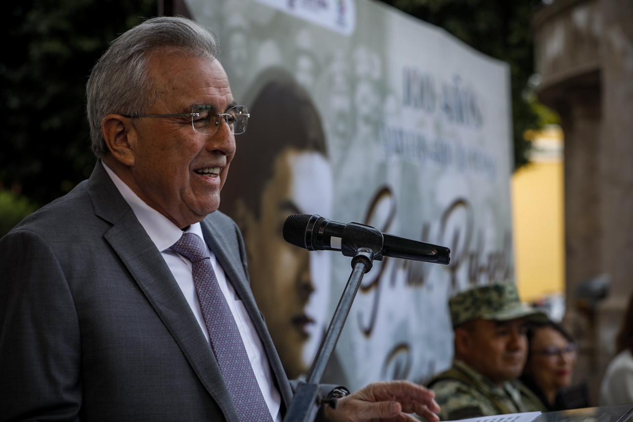 «Debo decir que, en rigor, no nos limitamos a recordarlo, sino que lo conmemoramos, es decir, compartimos su memoria, la mantenemos viva en nuestras mentes y nuestros corazones, ¿cómo no hacerlo? me pregunto, cuando su vida fue ejemplo de nobleza y entrega por los más elevados ideales de la patria. Desde su levantamiento en el Colegio Civil Rosales en 1909, hasta su insurrección contra el usurpador Victoriano Huerta, su Incorporación al villismo y su muerte en batalla a los 34 años en la toma de Morelia, Buelna fue un hombre de una sola pieza», expresó el Gobernador.