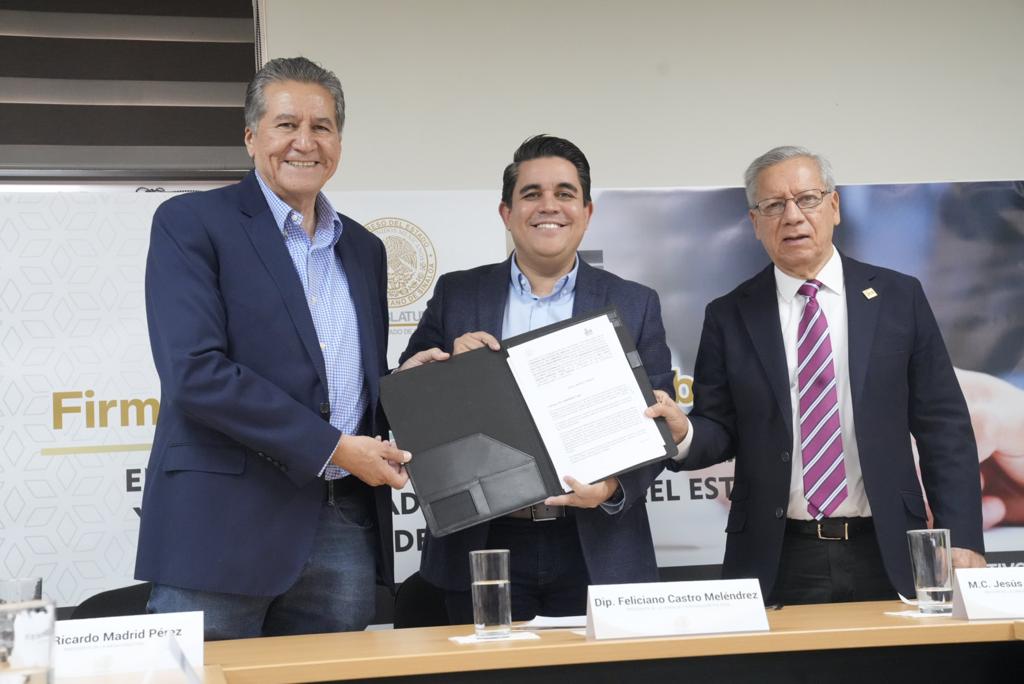 El Convenio de Colaboración, que entra en vigencia a partir de su firma, fue signado por el diputado Feliciano Castro Meléndrez, presidente de la Junta de Coordinación Política; el diputado Ricardo Madrid Pérez, presidente de la Mesa Directiva del Congreso del Estado y el rector de la Universidad Pedagógica del Estado de Sinaloa, Jesús Aarón Quintero Pérez.