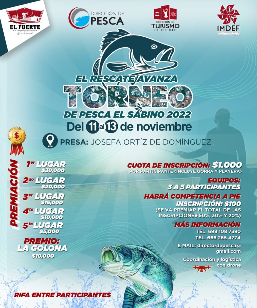 El día de hoy, en rueda de prensa, en la ciudad de Los Mochis, autoridades municipales del Municipio de El Fuerte, dieron a conocer los detalles sobre el Torneo de Pesca El Sabino 2022 y se hizo el lanzamiento oficial de la convocatoria para este magno evento deportivo.
