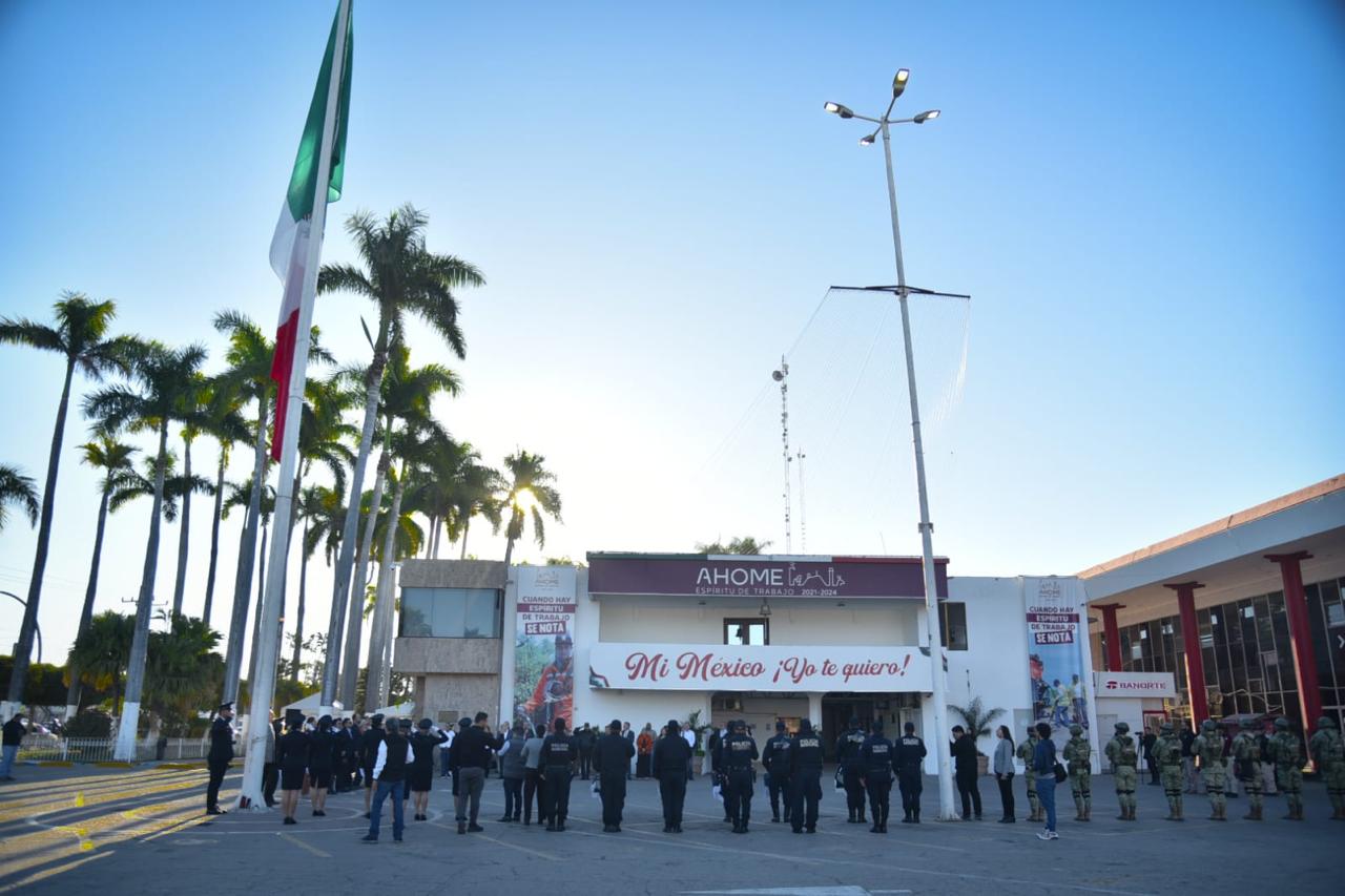 El evento cívico estuvo enmarcado y engalanado con la participación de la Escolta y Banda de Guerra de la Secretaría de Seguridad y Protección Ciudadana del Municipio de Ahome, teniendo como invitados a autoridades de las Fuerzas Armadas, Sedena, Guardia Nacional, Secretaría de Marina, así como a autoridades educativas y representantes de organismos ciudadanos de colegios de abogados.