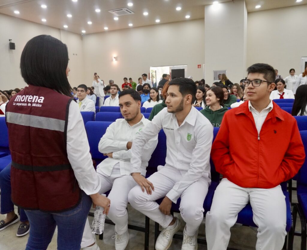 “Quiero decirles que se siente la energía de la juventud, soy maestra y extraño las aulas y más en este momento de estar al frente de las y los estudiantes de esta Universidad de Los Mochis quedo a la orden.