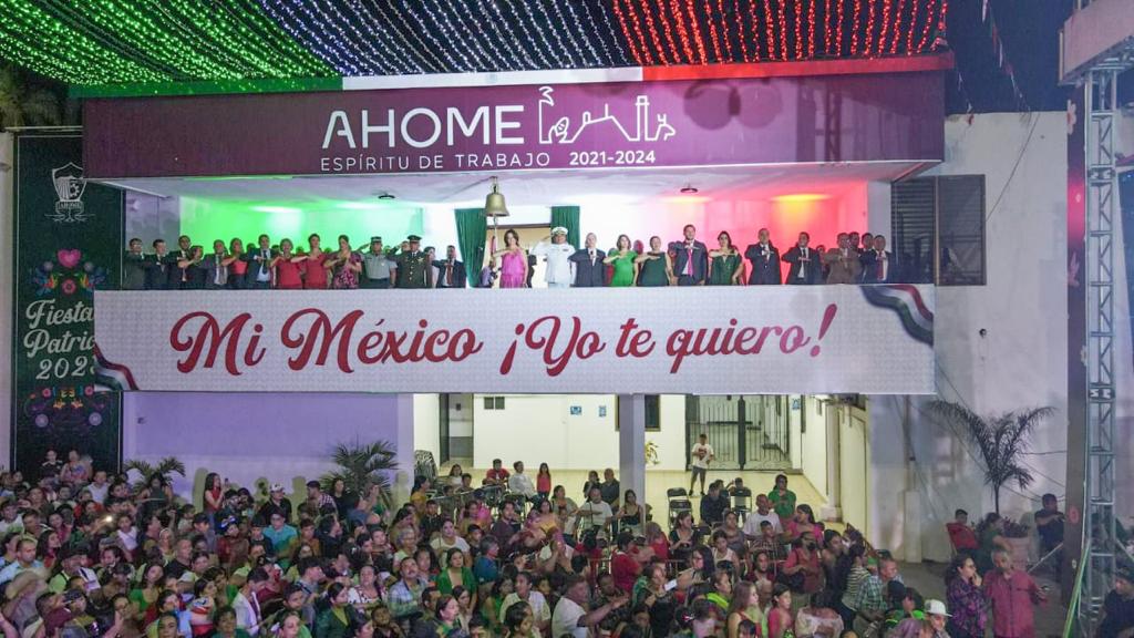 Fiesta y alegría se vivió en la tradicional celebración del Aniversario del Grito de Independencia, donde miles de ahomenses se dieron cita en Palacio Municipal para gritar al unísono “Viva México” junto al Alcalde C. Gerardo Vargas Landeros.